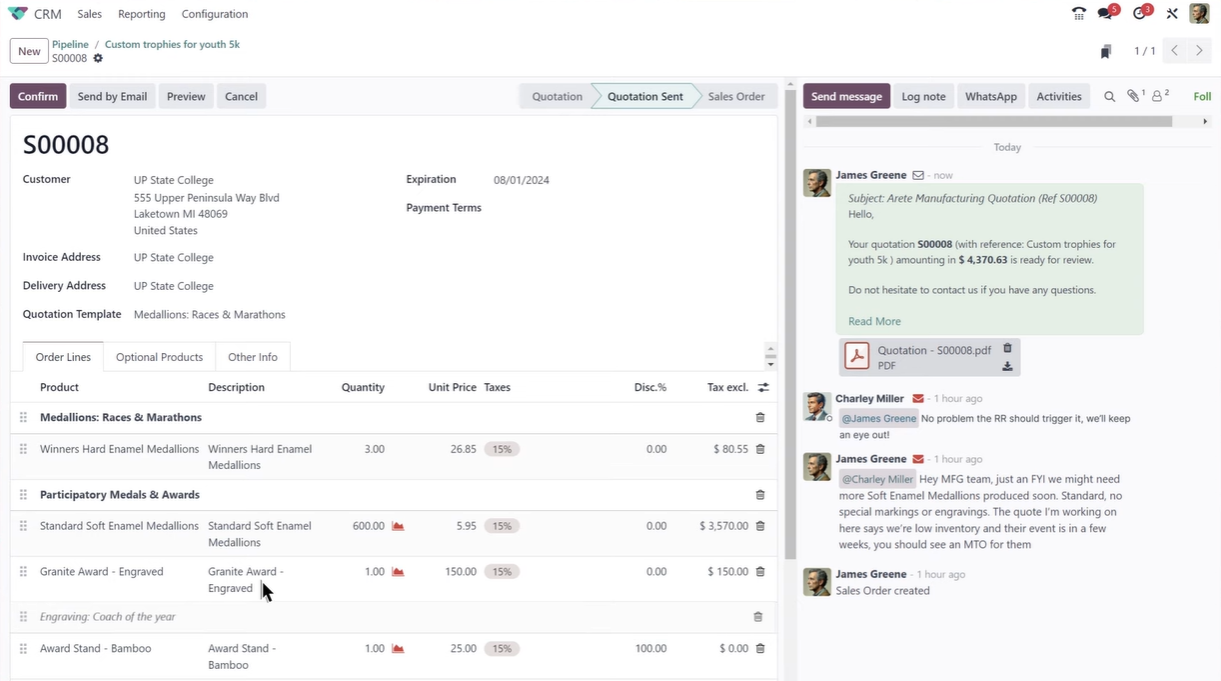 • Integrado con otras aplicaciones de Odoo (ventas, marketing, facturación), disponible para integrar conforme se requiera.