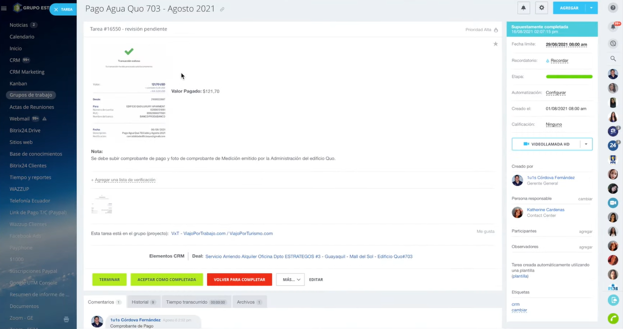 • Permite asignar tareas, hacer seguimiento de oportunidades, agregar notas y visualizar progreso.