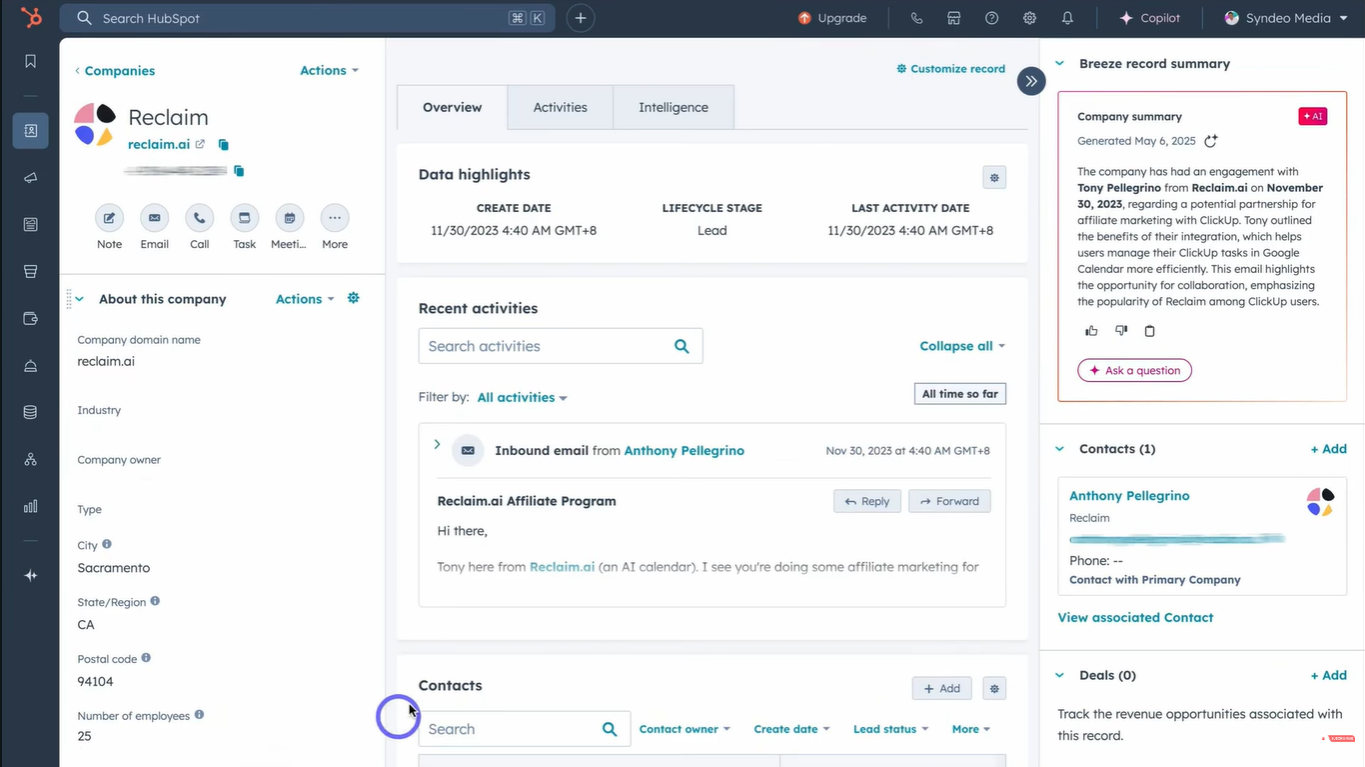 • Registro automático y sincronización de interacciones de clientes por correo, llamadas y redes sociales.
